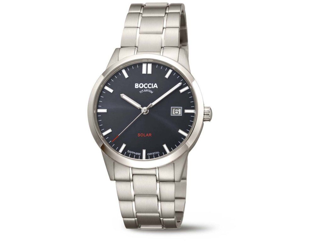 Společenské || Elegantní Boccia 3673-02 Titanium Solar 39mm 5ATM na Vás zapůsobí mimo jiné i svým nadčasovým vzhledem. stříbrná barva řemínku a skládací spona jsou již pouhou tečkou za dokonalostí tohoto modelu.| Kategorie: | Pánské hodinky |