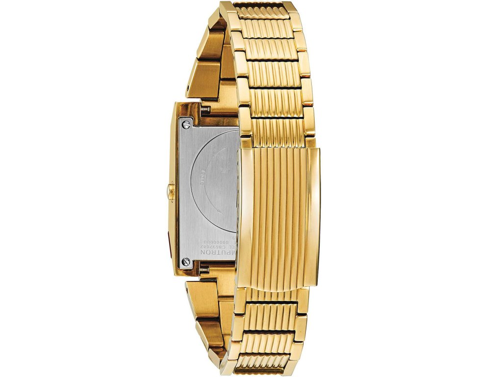 Společenské || Elegantní Bulova 97C110 Computron 31mm na Vás zapůsobí mimo jiné i svým nadčasovým vzhledem. zlatá barva řemínku a skládací spona jsou již pouhou tečkou za dokonalostí tohoto modelu.
