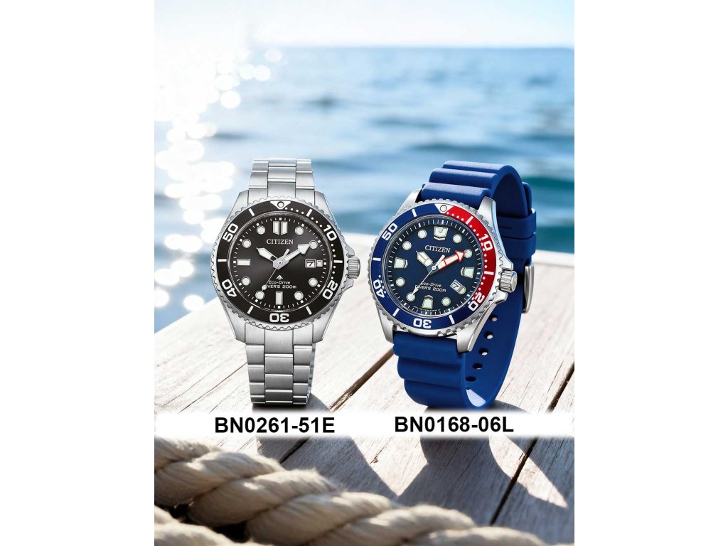 Potápěčské Citizen BN0261-51E Promaster Eco-Drive Diver 40mm 20ATM na Vás zapůsobí mimo jiné i svým nadčasovým vzhledem. stříbrná barva řemínku a skládací spona jsou již pouhou tečkou za dokonalostí tohoto modelu.| Kategorie: | Pánské hodinky |