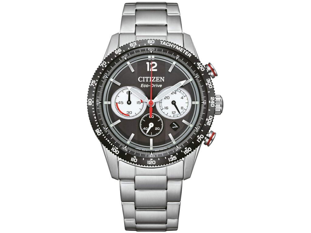 Chronograph Citizen CA4714-55E Eco-Drive Chronograph 40mm 10ATM na Vás zapůsobí mimo jiné i svým nadčasovým vzhledem. stříbrná barva řemínku a skládací spona jsou již pouhou tečkou za dokonalostí tohoto modelu.| Kategorie: | Pánské hodinky |