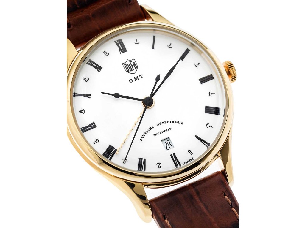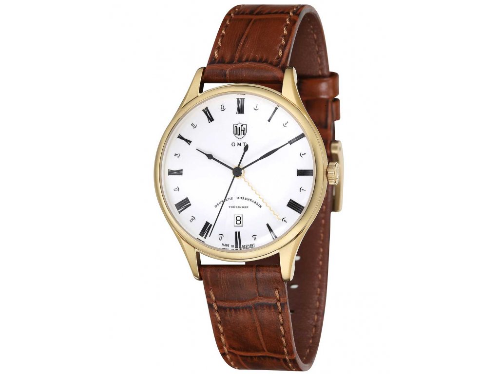 Společenské || Elegantní DuFa DF-9006-03 Weimar GMT na Vás zapůsobí mimo jiné i svým nadčasovým vzhledem. hnědá barva řemínku a klasická spona jsou již pouhou tečkou za dokonalostí tohoto modelu.| Kategorie: | Pánské hodinky |