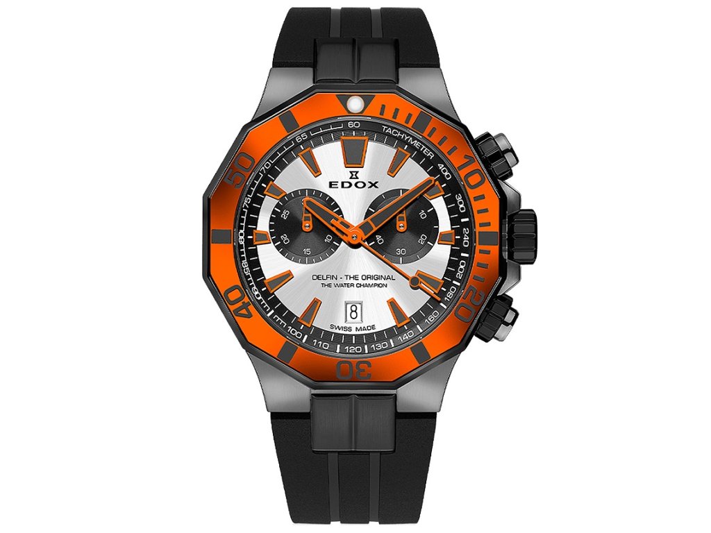 Sportovní Edox 10112-37GNOCA-ANO Delfin Chronograph 43mm na Vás zapůsobí mimo jiné i svým nadčasovým vzhledem. černá barva řemínku a klasická spona jsou již pouhou tečkou za dokonalostí tohoto modelu.