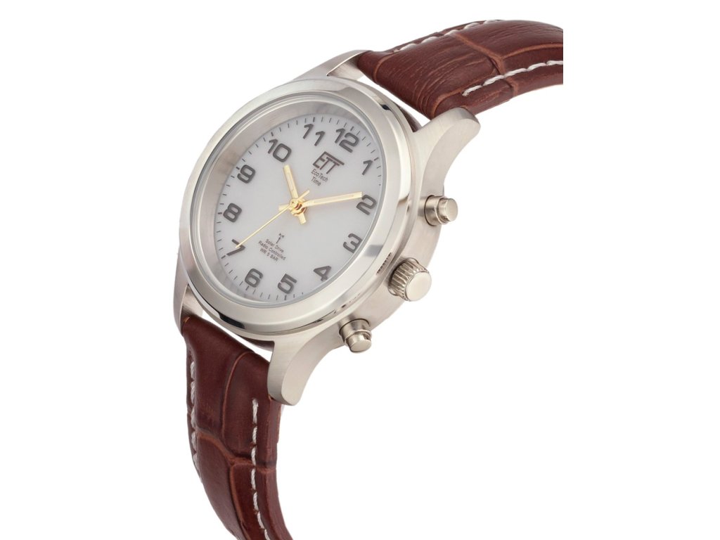 U rádiových solárních hodinek ETT světlo vstupuje do hodinek přes průhledný ciferník. Přirozené i umělé světlo je přeměněno na elektřinu pomocí křemíkového solárního článku. Tento proud je uložen v dobíjecí mikrobuňce, která slouží hodinkám jako úložiště energie. Denní příjem rádiového signálu je zajišťován miniaturním rádiovým přijímačem. Tím je zajištěna nejvyšší úroveň přesnosti. Letní a zimní čas i kalendář se samozřejmě mění automaticky. Hodinky jsou poháněny moderním quartzovým strojkem. Přesnost solárních hodinek s rádiovým ovládáním ETT je dálkově ovládána i po velmi dlouhou dobu (+/- 1 sekunda / 1 milion let). Hodinky mají rezervu energie až 6 měsíců. Užijete si tedy naprostou nezávislost. Zásoby energie jsou napájeny sluncem. Nastavení času probíhá zcela automaticky rádiovým signálem. Navíc jsou solární hodinky ETT mimořádně energeticky úsporné. Pokud hodinky zůstanou ve tmě delší dobu, funkce se vypne (funkce spánku), aby se šetřila energie. Jakmile se hodinky znovu rozsvítí, začne vyhledávání rádiového signálu a po příjmu se automaticky upraví.