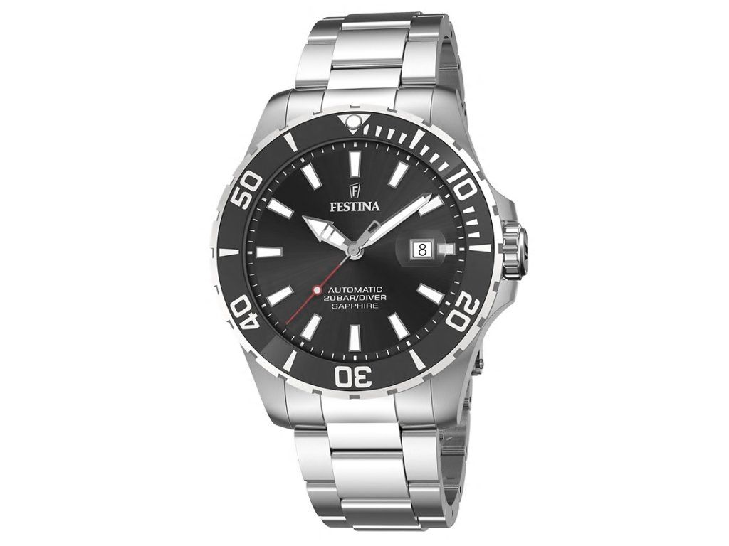 Sportovní Festina F20531/4 Diver automatic 44mm na Vás zapůsobí mimo jiné i svým nadčasovým vzhledem. stříbrná barva řemínku a skládací spona jsou již pouhou tečkou za dokonalostí tohoto modelu.| Kategorie: | Pánské hodinky |