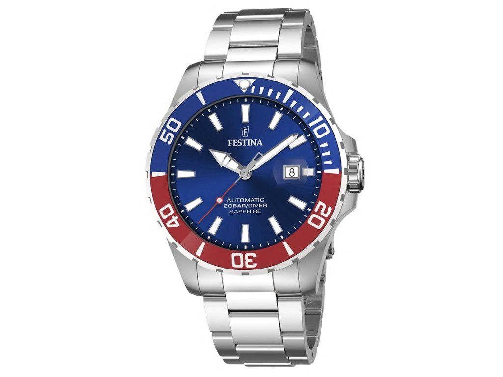 Sportovní Festina F20531/5 Diver automatic 44mm na Vás zapůsobí mimo jiné i svým nadčasovým vzhledem. stříbrná barva řemínku a skládací spona jsou již pouhou tečkou za dokonalostí tohoto modelu.| Kategorie: | Pánské hodinky |