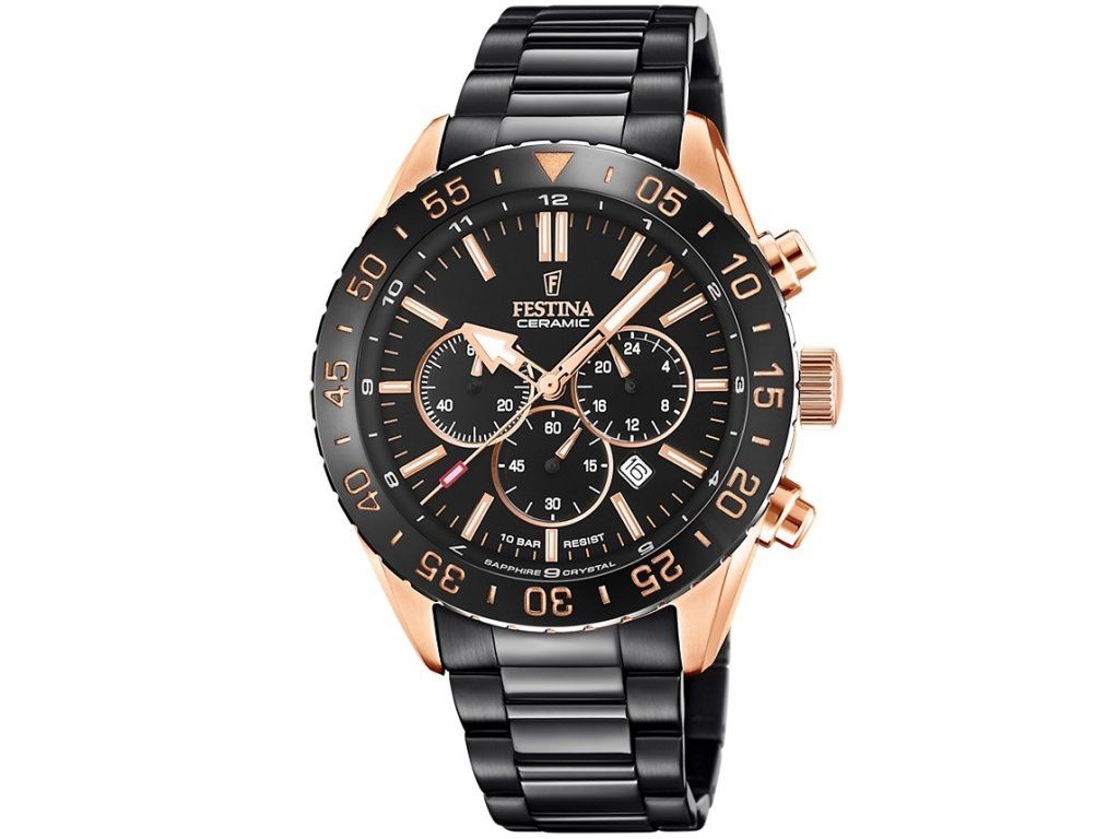 Sportovní Festina F20578/1 Ceramic Chronograph 44mm na Vás zapůsobí mimo jiné i svým nadčasovým vzhledem. černá barva řemínku a skládací spona jsou již pouhou tečkou za dokonalostí tohoto modelu.| Kategorie: | Pánské hodinky |