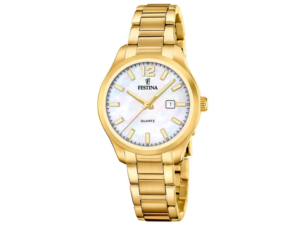 Festina F20741/1 na Vás zapůsobí mimo jiné i svým nadčasovým vzhledem. zlatá barva řemínku a skládací spona jsou již pouhou tečkou za dokonalostí tohoto modelu.| Kategorie: | Dámské hodinky |