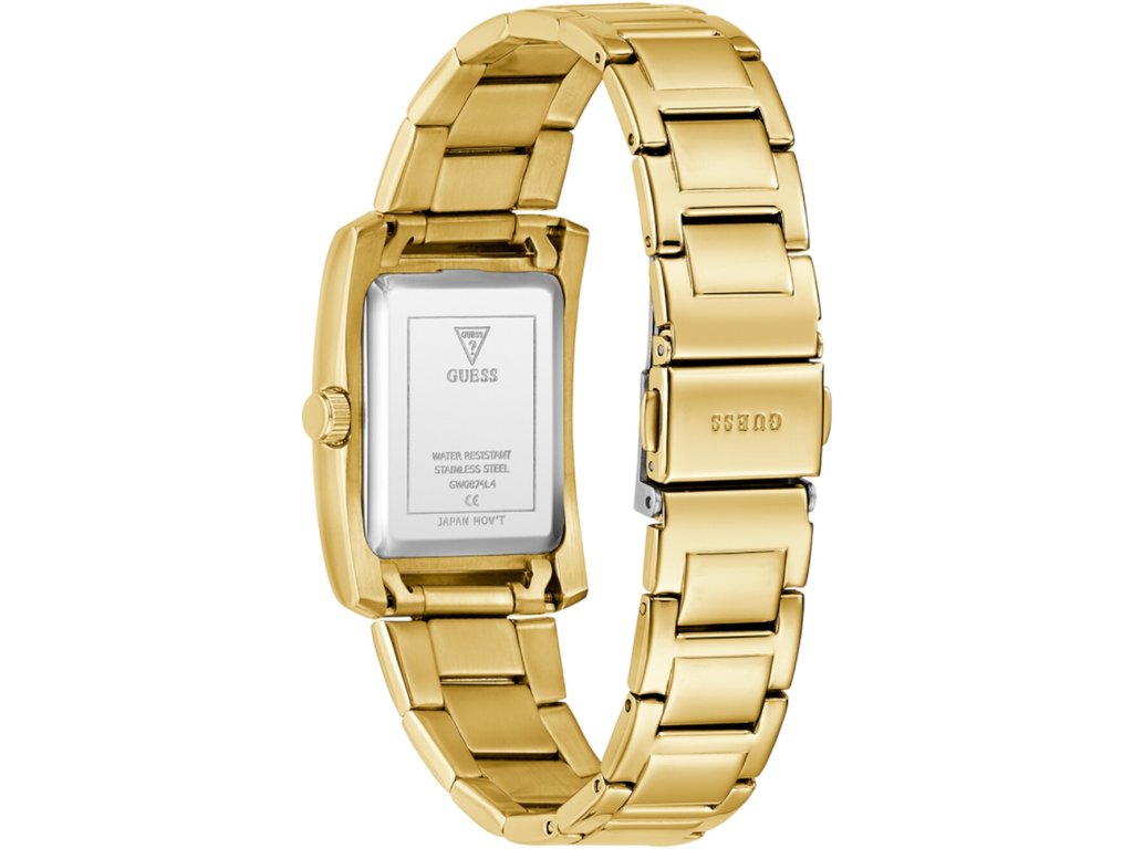 Společenské || Elegantní Guess GW0874L4 Bonnie 27mm 1ATM na Vás zapůsobí mimo jiné i svým nadčasovým vzhledem. zlatá barva řemínku a skládací spona jsou již pouhou tečkou za dokonalostí tohoto modelu.| Kategorie: | Dámské hodinky |