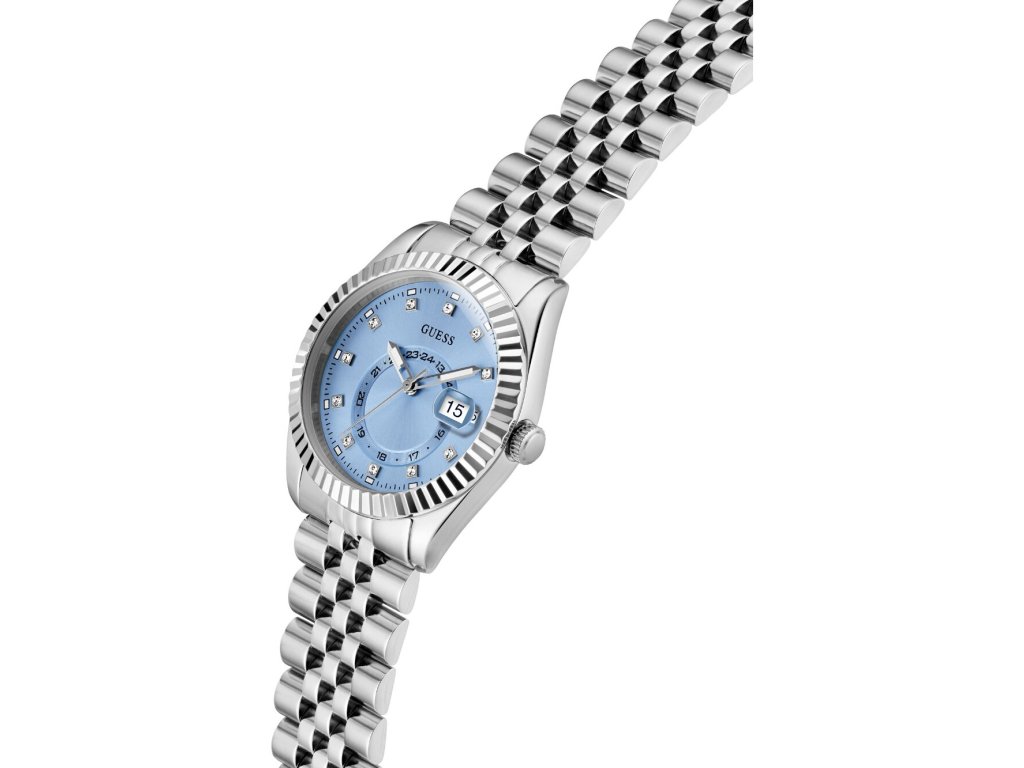 Společenské || Elegantní Guess GW0936L1 Jada 34mm 1ATM na Vás zapůsobí mimo jiné i svým nadčasovým vzhledem. stříbrná barva řemínku a skládací spona jsou již pouhou tečkou za dokonalostí tohoto modelu.| Kategorie: | Dámské hodinky |