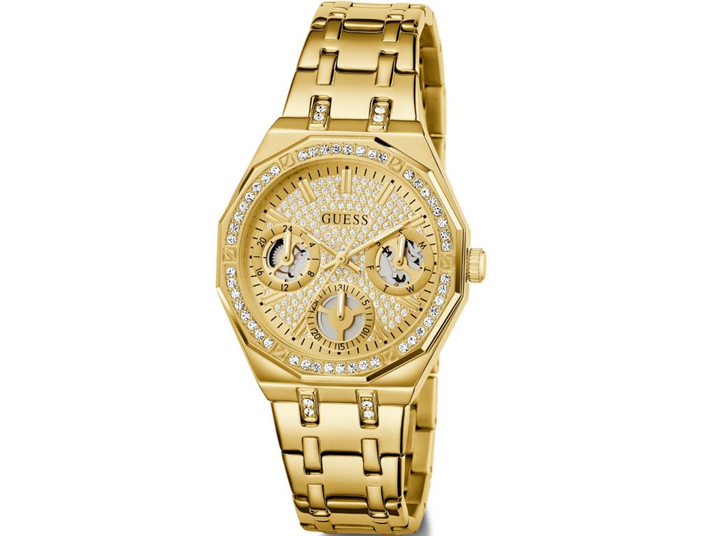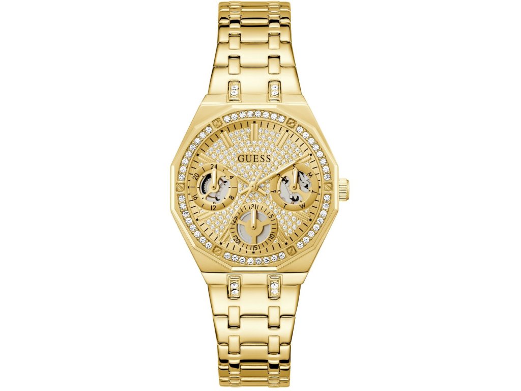 Společenské || Elegantní Guess GW0988L2 Quinn 36mm 5ATM na Vás zapůsobí mimo jiné i svým nadčasovým vzhledem. zlatá barva řemínku a skládací spona jsou již pouhou tečkou za dokonalostí tohoto modelu.| Kategorie: | Dámské hodinky |