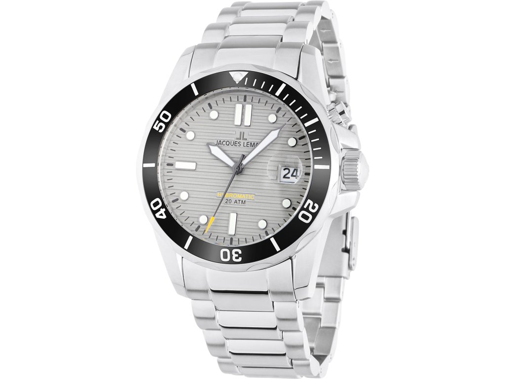 Sportovní Jacques Lemans 1-2170H Hybromatic Diver 41mm 20ATM na Vás zapůsobí mimo jiné i svým nadčasovým vzhledem. stříbrná barva řemínku a skládací spona jsou již pouhou tečkou za dokonalostí tohoto modelu.| Kategorie: | Pánské hodinky |