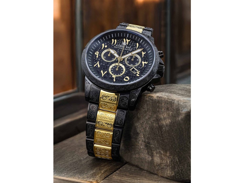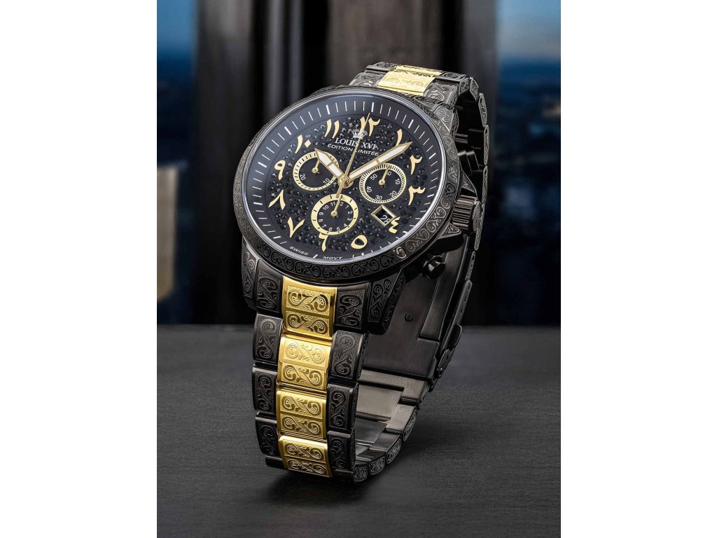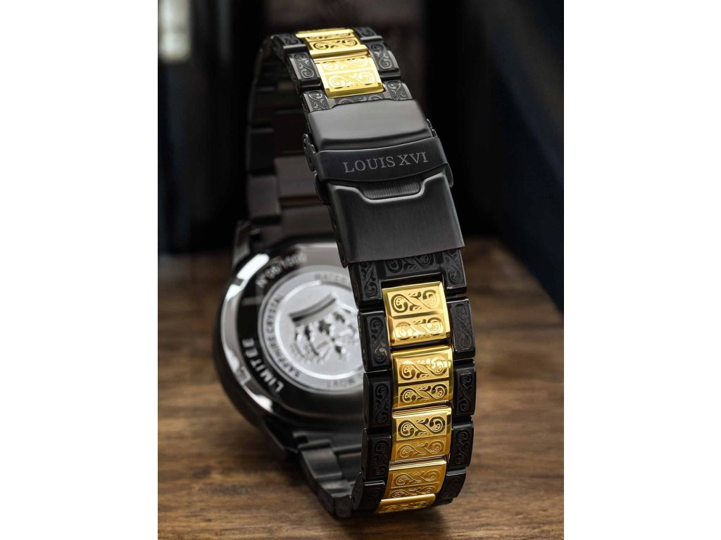 Společenské || Elegantní Louis XVI LXVI1098 Palais Royale 43mm 10ATM na Vás zapůsobí mimo jiné i svým nadčasovým vzhledem. zlatá || černá barva řemínku a bezpečnostní skládací spona jsou již pouhou tečkou za dokonalostí tohoto modelu.| Kategorie: | Pánské hodinky |