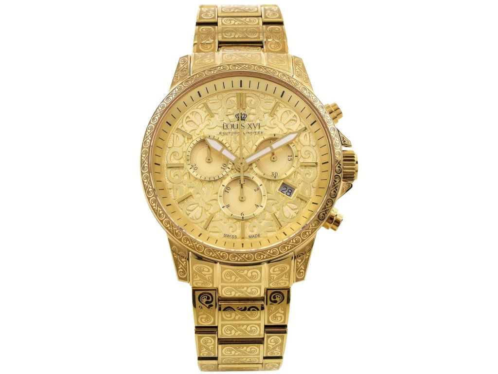 Společenské || Elegantní Louis XVI LXVI1800 Palais Royale 2.0 43mm 10ATM na Vás zapůsobí mimo jiné i svým nadčasovým vzhledem. zlatá barva řemínku a bezpečnostní skládací spona jsou již pouhou tečkou za dokonalostí tohoto modelu.