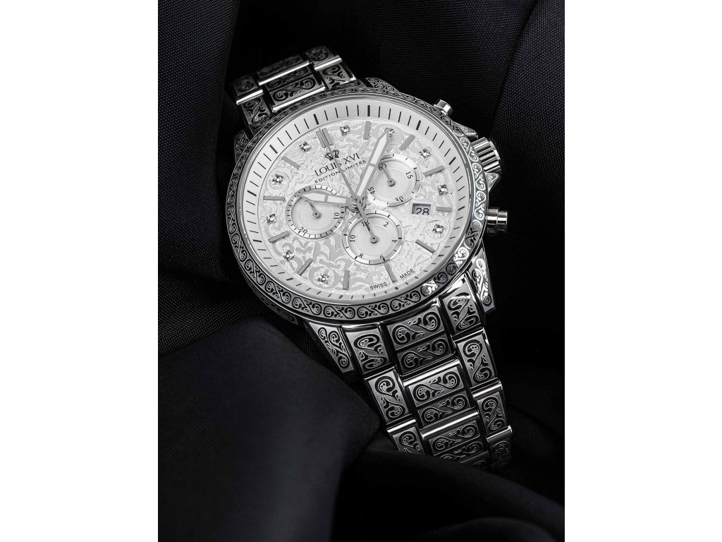 Společenské || Elegantní Louis XVI LXVI1820 Palais Royale 2.0 Diamond 43mm 10ATM na Vás zapůsobí mimo jiné i svým nadčasovým vzhledem. stříbrná barva řemínku a bezpečnostní skládací spona jsou již pouhou tečkou za dokonalostí tohoto modelu.| Kategorie: | Pánské hodinky |