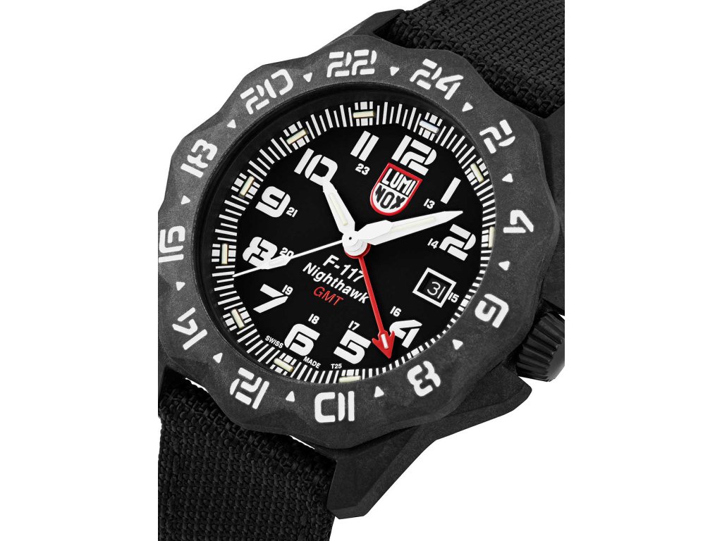 • Manufacturer no.: XA.6441 • Manufacturer series: F-117 Nighthawk GMT 44mm • Functions: 2nd timezone, Date, Hour, Minute, Second • Movement: Battery (quartz) • Movement label: Swiss Made • Dial color: Black • Display: Analog • Water resistant: 20 • Bezel: bidirectional, Turnable • Surface finish: Matted • Case color: Black • Case material: Carbon • Case thickness: 14 • Case shape: Round • Case width: 44 • Caseback: screwed, Stainless steel bottom • Gender: Mens • Glas: anti-reflecting, Saphire glass • Lighting: Illumin. hands, Illumin. indexes • Style: Sporty • Strap material: Textile • Strap color: Black • Lug width: 23 • Clasp: Buckle clasp • Max wrist circumferences: 230 • Item weight: 0.07 • Scope of delivery: Box, Instruction, Packaging, Warranty documents| Kategorie: | Pánské hodinky |