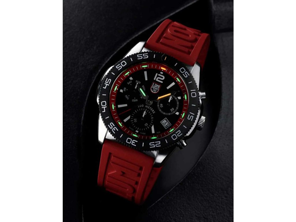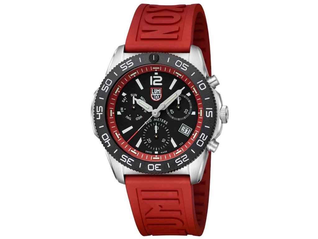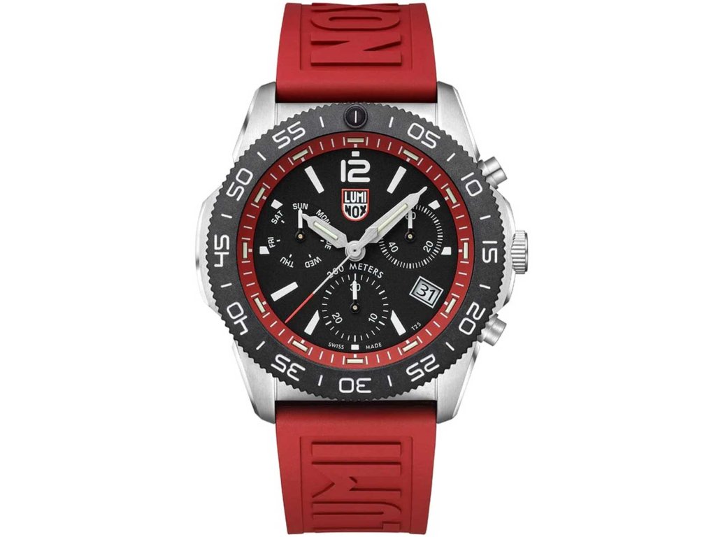 Sportovní Luminox XS.3155 Pacific Diver Chronograph 44mm 20ATM na Vás zapůsobí mimo jiné i svým nadčasovým vzhledem. červená barva řemínku a skládací spona jsou již pouhou tečkou za dokonalostí tohoto modelu.| Kategorie: | Pánské hodinky |