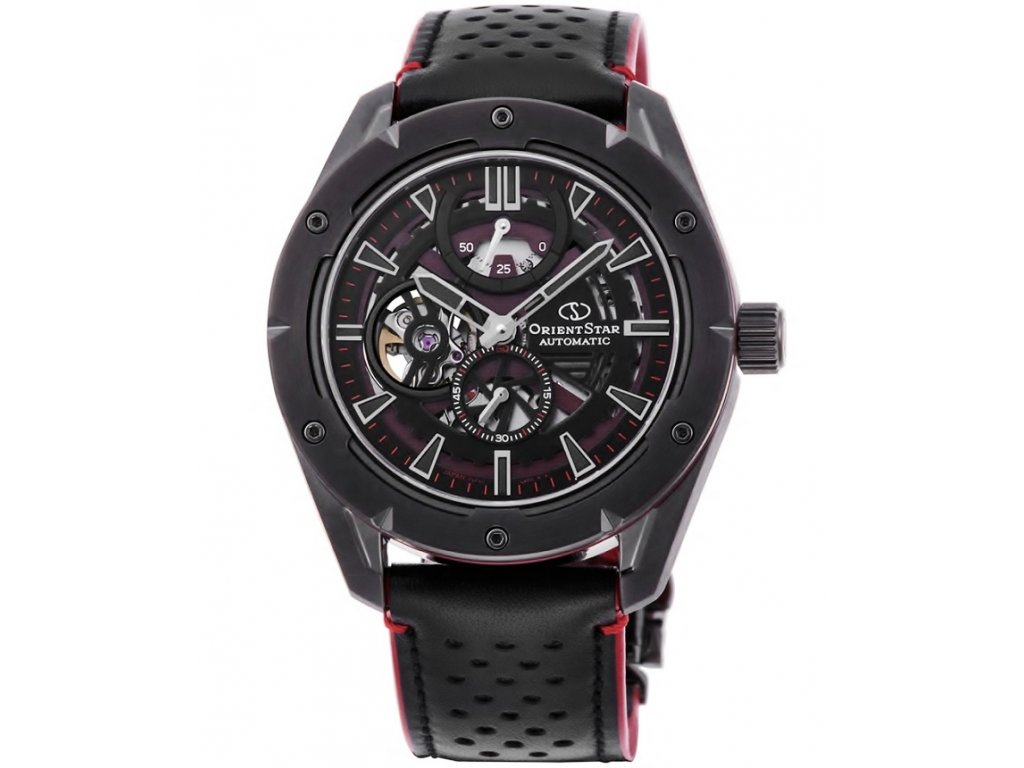 Hodinky Avant-garde Skeleton s moderním stylovým designem jsou evolucí modelu Classic Skeleton.Číselník se skládá ze dvou ažurových desek, které jsou na sebe navrstveny, a zobrazují tak hloubku s trojrozměrným efektem. Vzor včelí plástve dole a motiv ozubeného kola nahoře zdůrazňují mechanické vlastnosti hodinek. Avantgardní Skeleton zdokonalil expozici mechanického strojku jedinečného pro ORIENT STAR. Každá část displeje je snadno čitelná na první pohled, a to nejen hodinové a minutové ručičky a indexy, ale také ukazatel rezervy chodu na 12. hodině a malá vteřinová ručička na 6. hodině. I při skeletonizaci je dosaženo vysoké čitelnosti díky komplementárnímu barevnému schématu použitému na vypočítaných otevřených dílech číselníku.