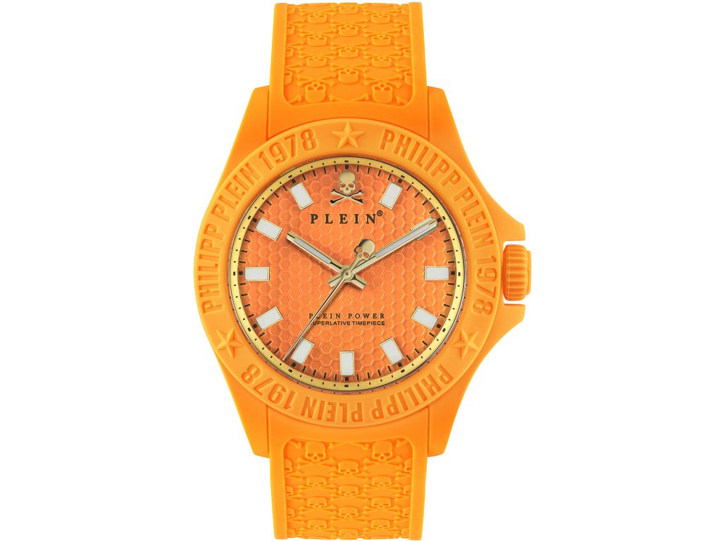 • Manufacturer no.: PWKAA1221 • Manufacturer series: Plein Power 44mm • Functions: Hour, Minute, Second • Movement: Battery (quartz) • Dial color: Orange • Display: Analog • Water resistant: 5 • Bezel: Fixed • Surface finish: Matted • Case color: Orange • Case material: Stainless steel • Case thickness: 12 • Case shape: Round • Case width: 44 • Caseback: pressed, Stainless steel bottom • Gender: Ladies, Mens, Unisex • Glas: hardened, Mineral glass • Lighting: Illumin. hands, Illumin. indexes • Style: Sporty • Strap material: Silicon • Strap color: Orange • Lug width: 22 • Clasp: Buckle clasp • Max wrist circumferences: 210 • Item weight: 0.07 • Scope of delivery: Box, Instruction, Packaging, Warranty documents| Kategorie: | Pánské hodinky |