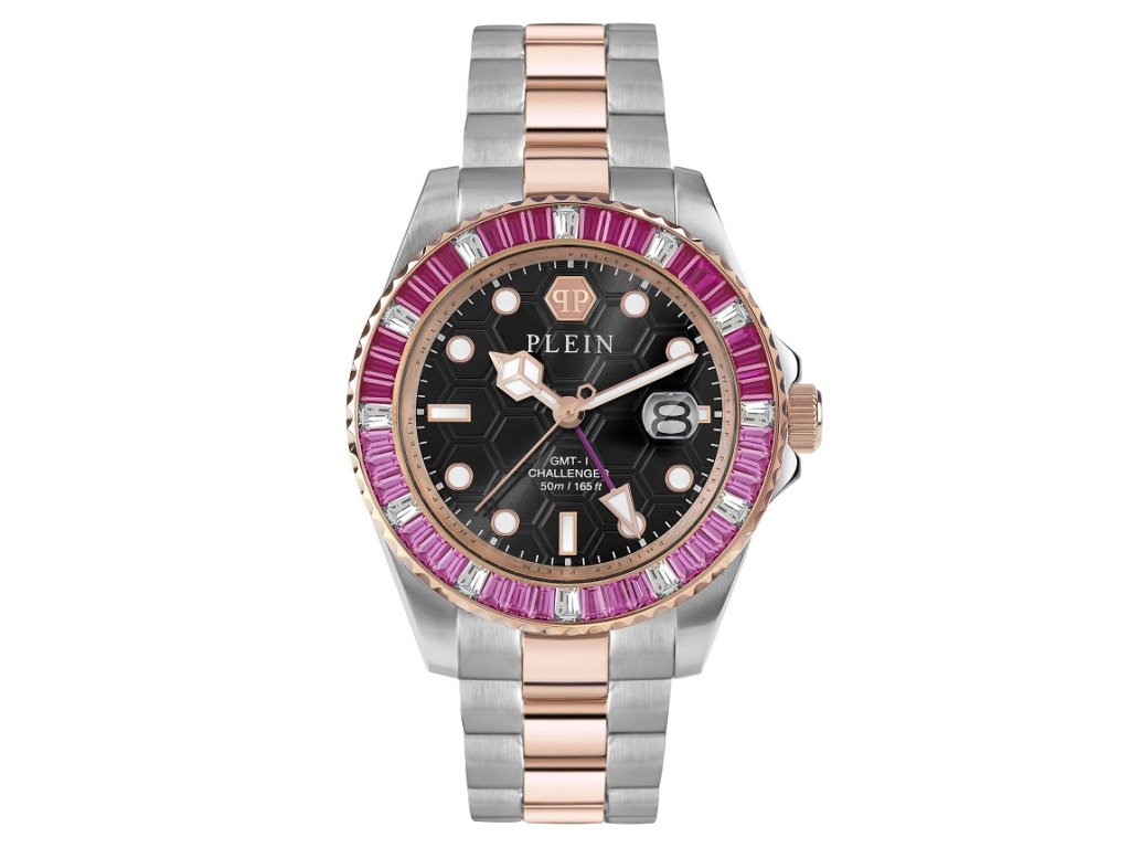 Společenské || Elegantní Philipp Plein PWPZA0424 GMT-I Challenger Baguettes 44mm 5ATM na Vás zapůsobí mimo jiné i svým nadčasovým vzhledem. růžové zlato || stříbrná barva řemínku a motýlek jsou již pouhou tečkou za dokonalostí tohoto modelu.| Kategorie: | Pánské hodinky |