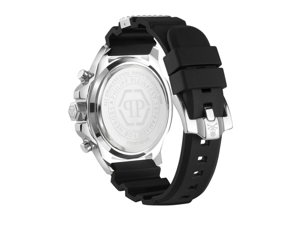 Sportovní Philipp Plein PWWFA0125 The $kull Chrono 45mm 5ATM na Vás zapůsobí mimo jiné i svým nadčasovým vzhledem. černá barva řemínku a klasická spona jsou již pouhou tečkou za dokonalostí tohoto modelu.| Kategorie: | Pánské hodinky |