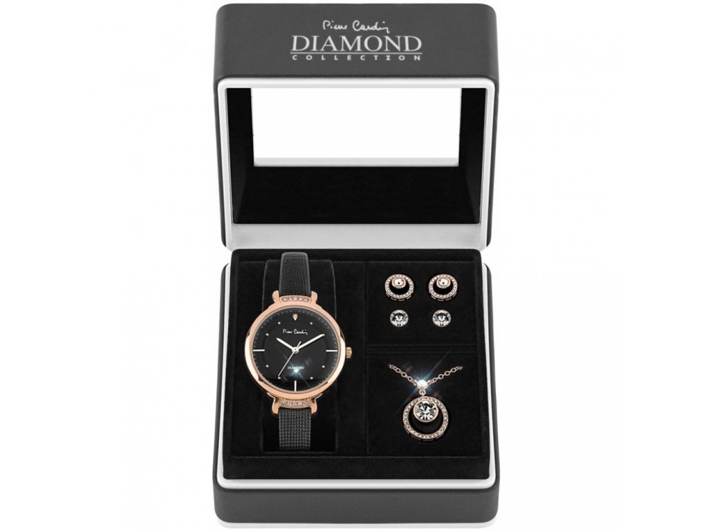 Nemůžete se rozhodnout, jestli své milované zakoupit hodinky nebo stylový šperk? Nedělejte kompromisy a pořiďte jí dárkovou sadu z dílny francouzské značky Pierre Cardin. Hodinky uvnitř černé krabičky zaujmou na první pohled čirými krystaly, které jsou rozprostřené po ciferníku i v rosegold pouzdře. Na zápěstí se hodinky připínají černým koženým řemínkem. Součástí sady je i stylový náhrdelník a půvabné náušnice. Vsaďte na doplňky, které si každá dáma zamiluje na první pohled.