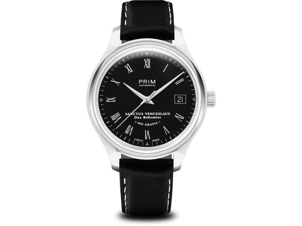 Klasické společenské hodinky s netradičním designem číselníku z oblíbené řady PRIM Automatic. Hodinky připomínají odkaz sv. Václava – významné historické osobnosti a patrona českých zemí. Na elegantním číselníku vynikají indexy označené římskými číslicemi. Decentní nápis velebí nejznámějšího českého světce latinským nápisem ve znění: „Sanctus Venceslaus, Dux Bohemiae, Dei Gratia", tedy „Svatý Václav, z Boží milosti kníže český“.