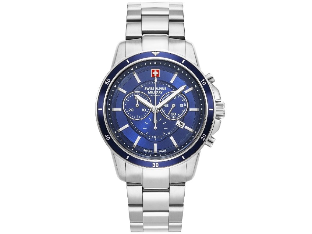 Sportovní || Společenské || Elegantní Swiss Alpine Military 7089.9135 Chronograph 44mm na Vás zapůsobí mimo jiné i svým nadčasovým vzhledem. stříbrná barva řemínku a skládací spona jsou již pouhou tečkou za dokonalostí tohoto modelu.| Kategorie: | Pánské hodinky |