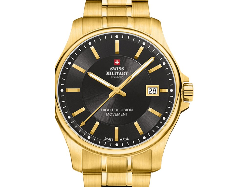 Společenské || Elegantní Swiss Military by Chrono SM30200.08 na Vás zapůsobí mimo jiné i svým nadčasovým vzhledem. zlatá barva řemínku a skládací spona jsou již pouhou tečkou za dokonalostí tohoto modelu.| Kategorie: | Pánské hodinky |