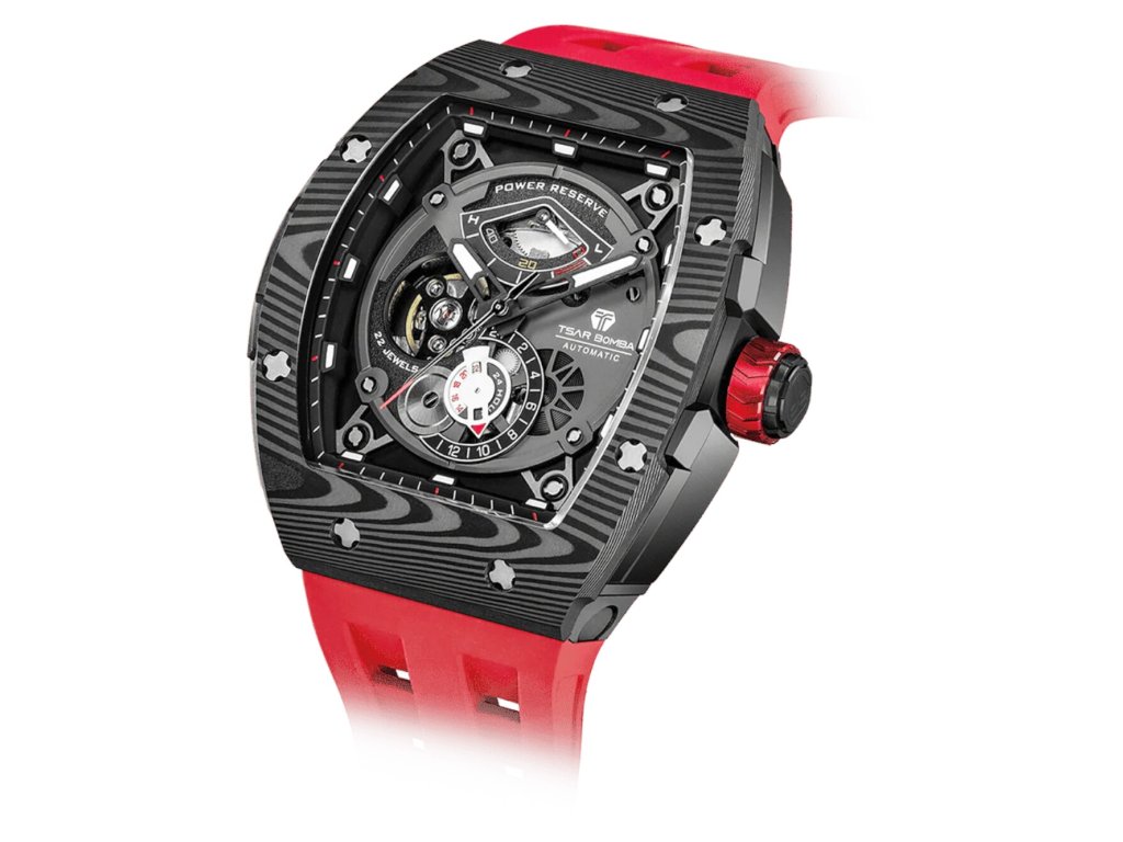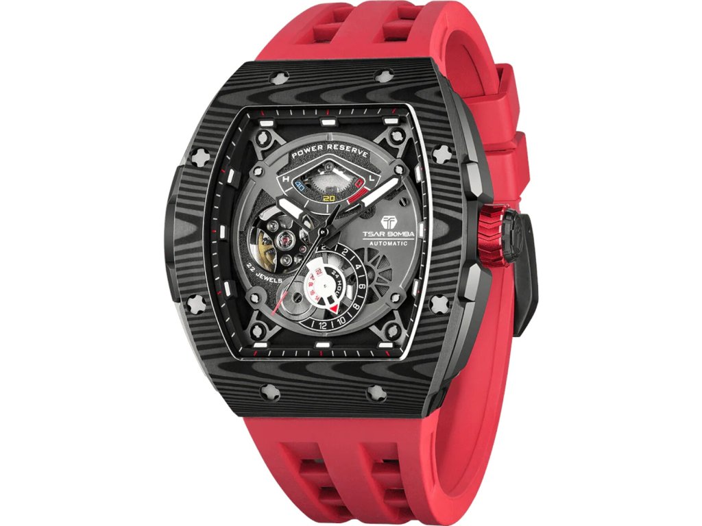 Společenské || Elegantní Tsar Bomba TB8210CF2-03 Elemental Carbon Fiber Automatic 45mm 5ATM na Vás zapůsobí mimo jiné i svým nadčasovým vzhledem. červená barva řemínku a klasická spona jsou již pouhou tečkou za dokonalostí tohoto modelu.| Kategorie: | Pánské hodinky |