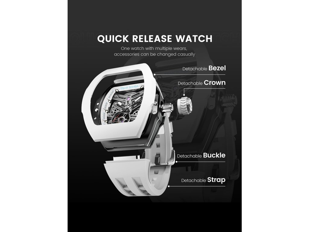 Společenské || Elegantní Tsar Bomba TB8218(1+7)FKM-01 Atomic Combo Interchangeable Automatic Watch 45mm 10ATM na Vás zapůsobí mimo jiné i svým nadčasovým vzhledem. modrá || zelená || oranžová || červená || černá || bílá barva řemínku a klasická spona jsou již pouhou tečkou za dokonalostí tohoto modelu.| Kategorie: | Pánské hodinky |