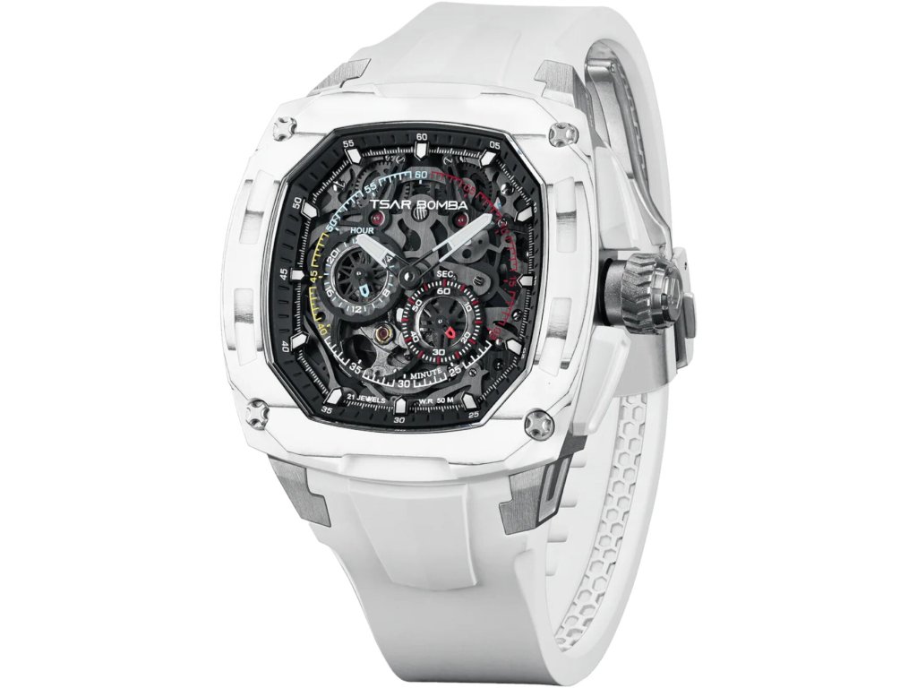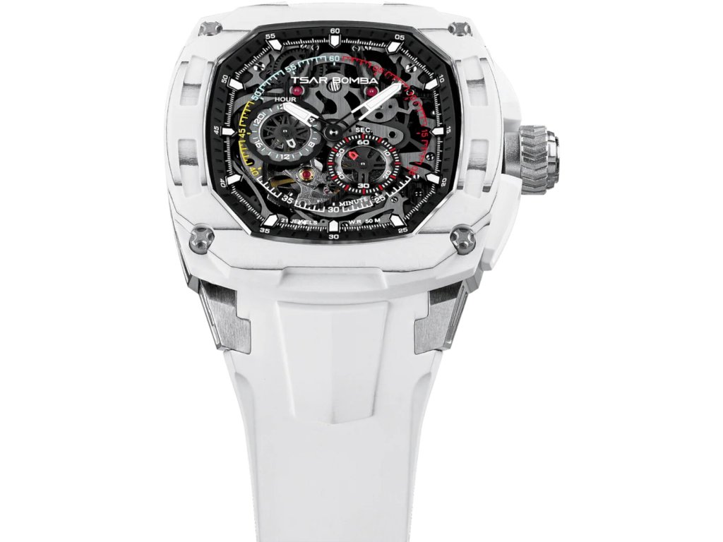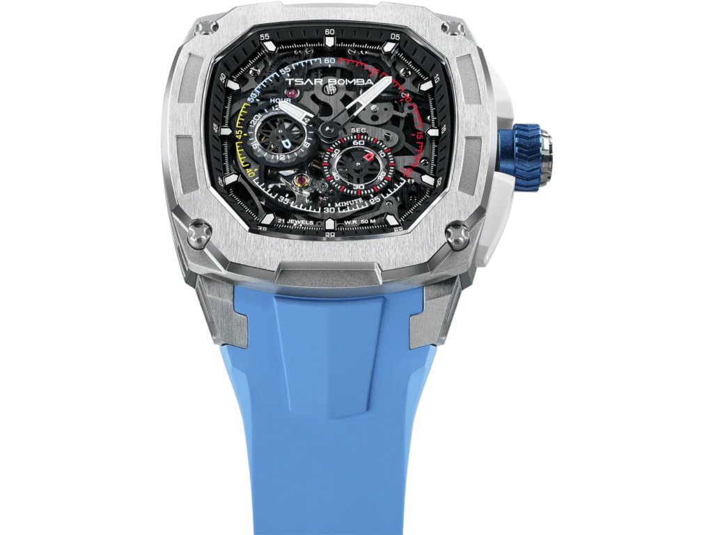 Společenské || Elegantní Tsar Bomba TB8601-02 Dark Matter 1 Interchangeable Automatic Watch 43mm 5ATM na Vás zapůsobí mimo jiné i svým nadčasovým vzhledem. modrá || bílá barva řemínku a skládací spona jsou již pouhou tečkou za dokonalostí tohoto modelu.| Kategorie: | Pánské hodinky |