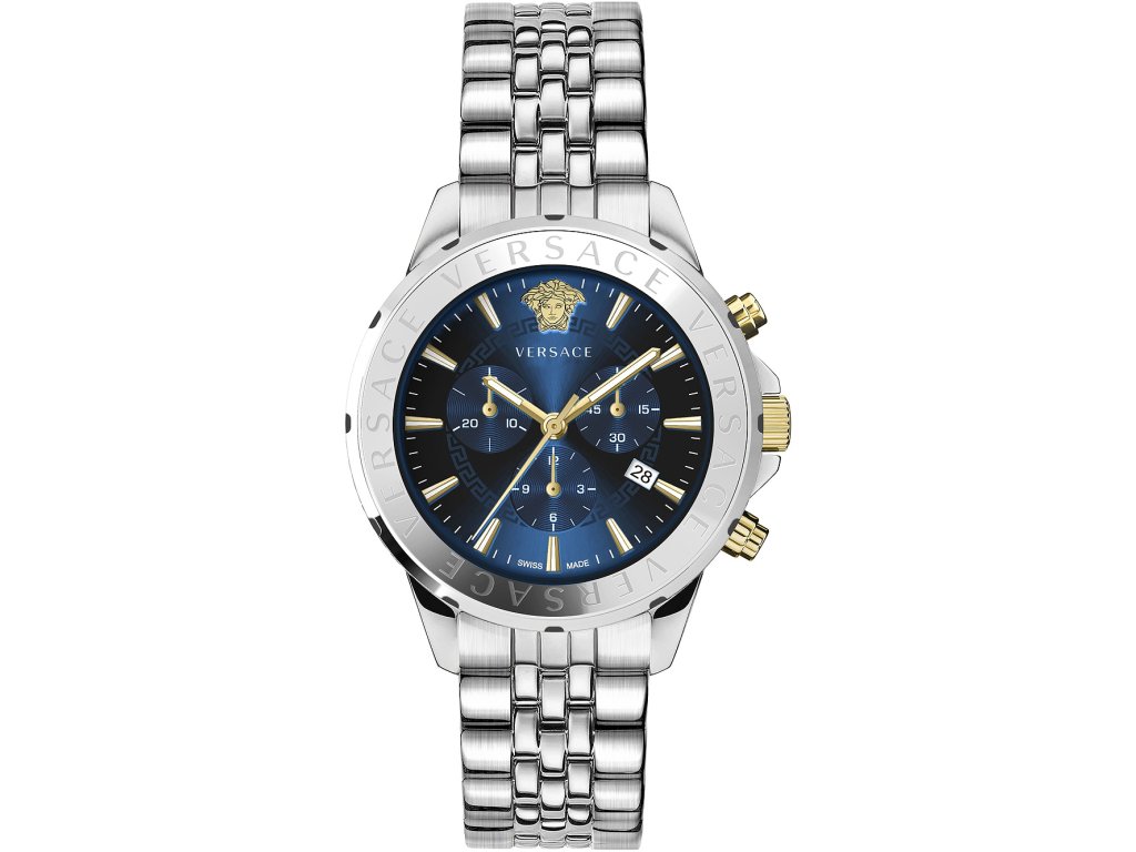 Sportovní || Společenské || Elegantní Versace VEV601923 Signature Chrono 44mm na Vás zapůsobí mimo jiné i svým nadčasovým vzhledem. stříbrná barva řemínku a motýlek jsou již pouhou tečkou za dokonalostí tohoto modelu.| Kategorie: | Pánské hodinky |